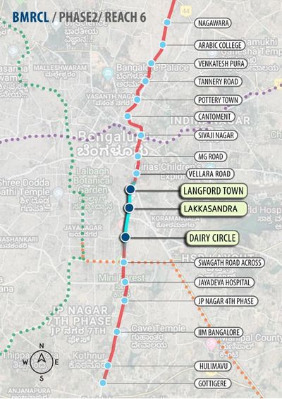 The Planned alignment of Bangalore Metro line Phase II is running from Gottigere – Nagawara of